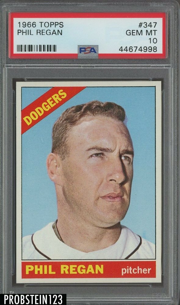 1966 Topps #347 Phil Regan Los Angeles Dodgers PSA 10 GEM MINT TOUGH CARD