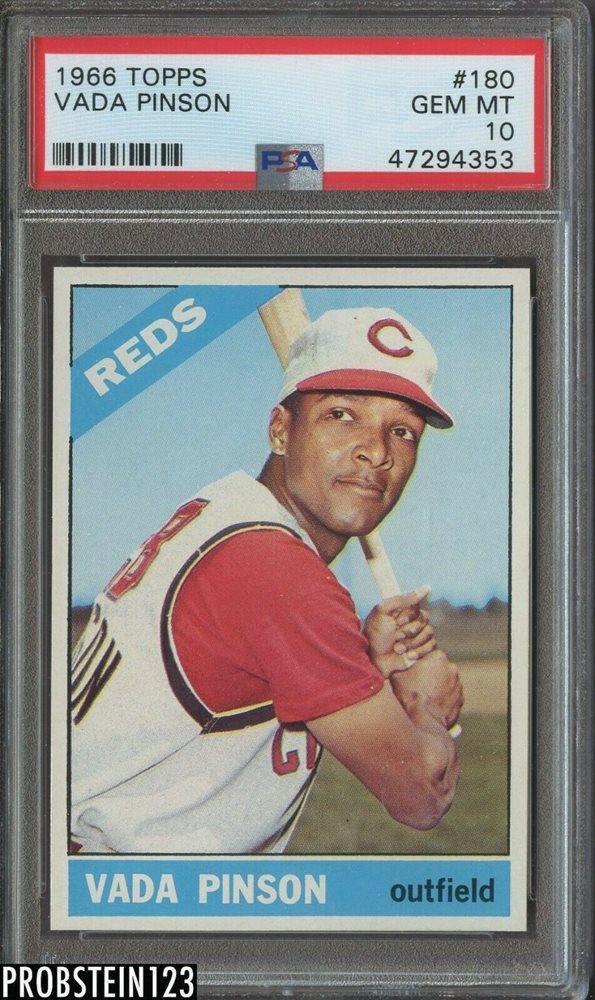 1966 Topps #180 Vada Pinson Reds PSA 10 GEM MINT " Sharp Corners "