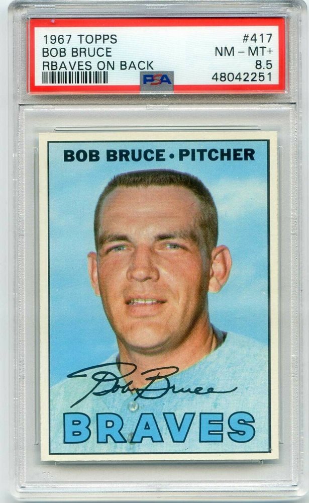 1967 Topps #417 Bob Bruce PSA 8.5 NMMT+ Atlanta Braves VAR - RBAVES on Back
