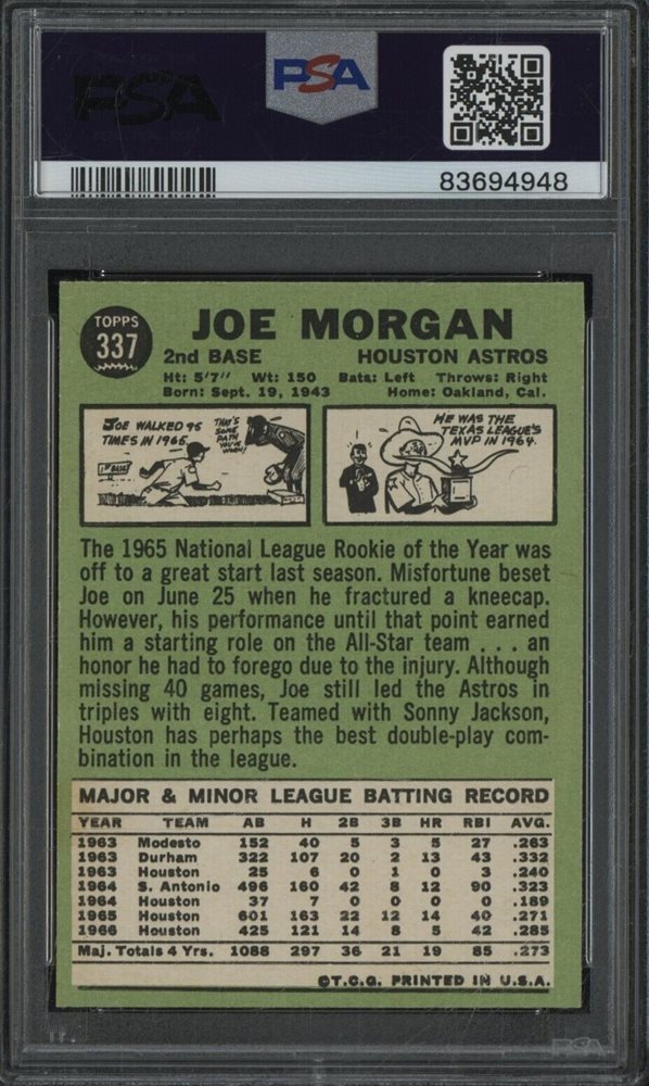 1967 Topps #337 Joe Morgan PSA 8.5 HOF Centered Astros