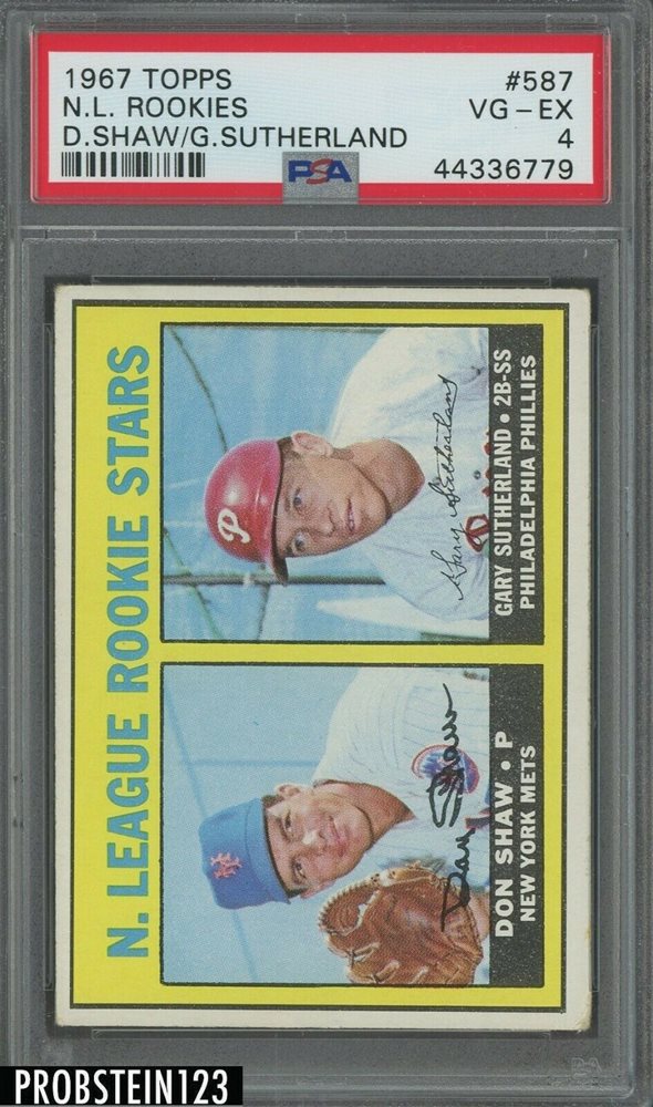 1967 Topps #587 N.L. Rookies Don Shaw Gary Sutherland PSA 4 VG-EX