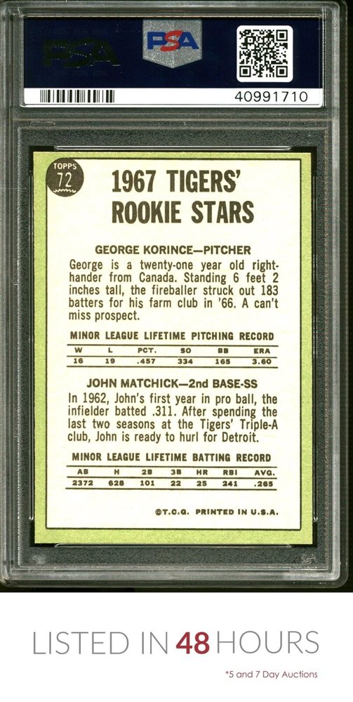1967 TOPPS #72 TIGERS ROOKIES PSA 9 SET BREAK