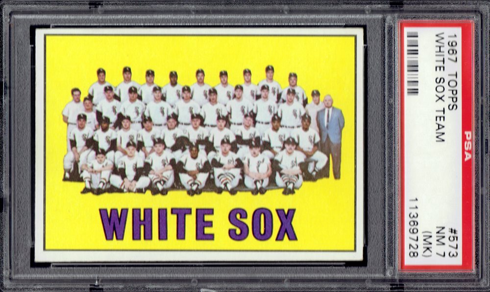 1967 Topps Baseball High Number #573 Chicago White Sox Team PSA 7 NM (MK)