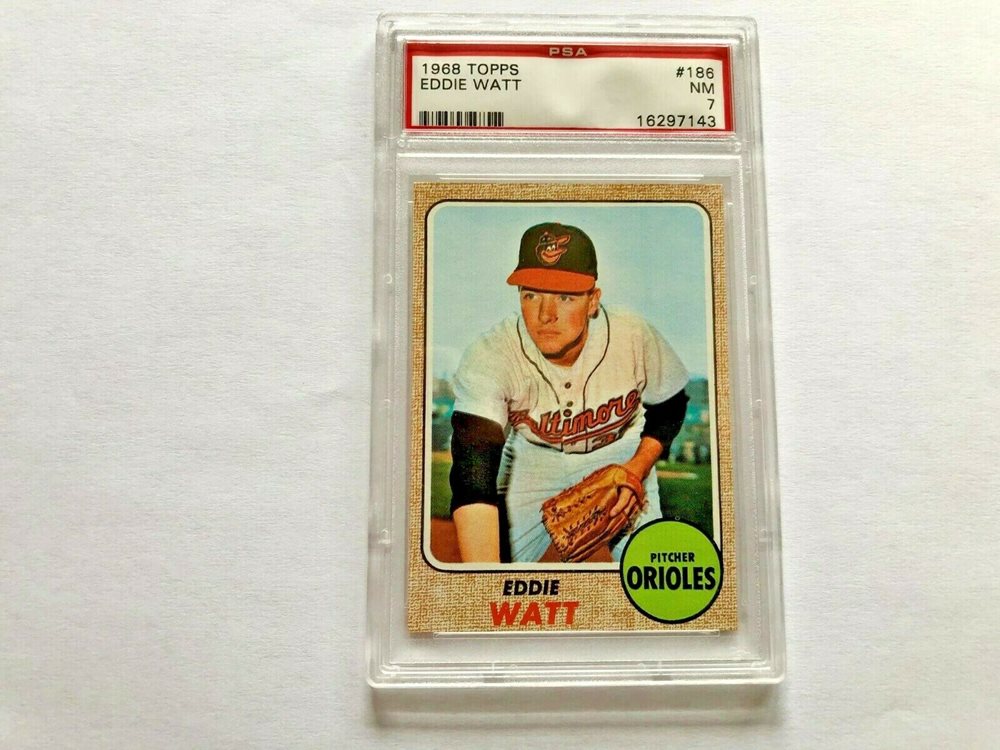 1968 TOPPS #186 EDDIE WATT. ORIOLES NEAR MINT PSA 7