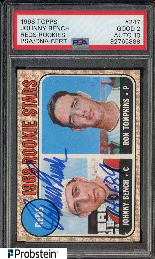1968 Topps #247 Reds Rookies Johnny Bench RC HOF PSA 2 PSA/DNA 10 AUTO