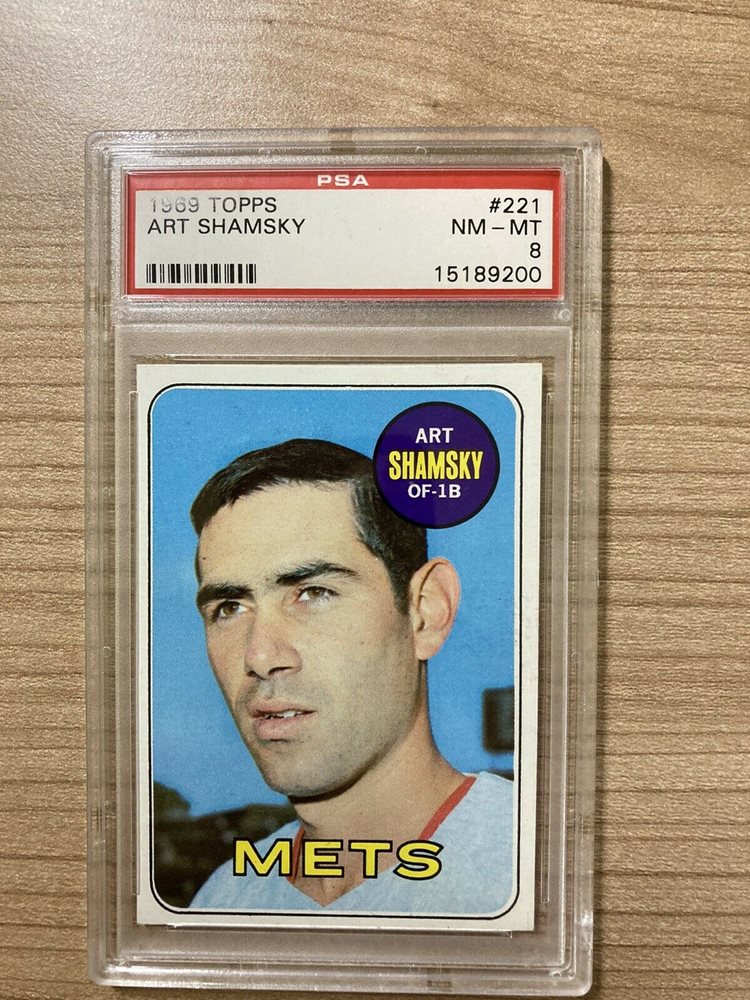 1969 TOPPS #221 ART SHAMSKY METS PSA 8 NM-MT WORLD SERIES CHAMPS SET BREAK