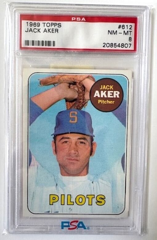 1969 Topps Baseball Card #612 Jack Aker Pilots PSA 8 NM-MT