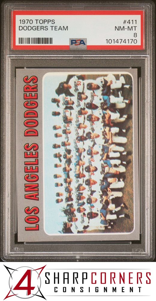 1970 TOPPS #411 DODGERS TEAM PSA 8