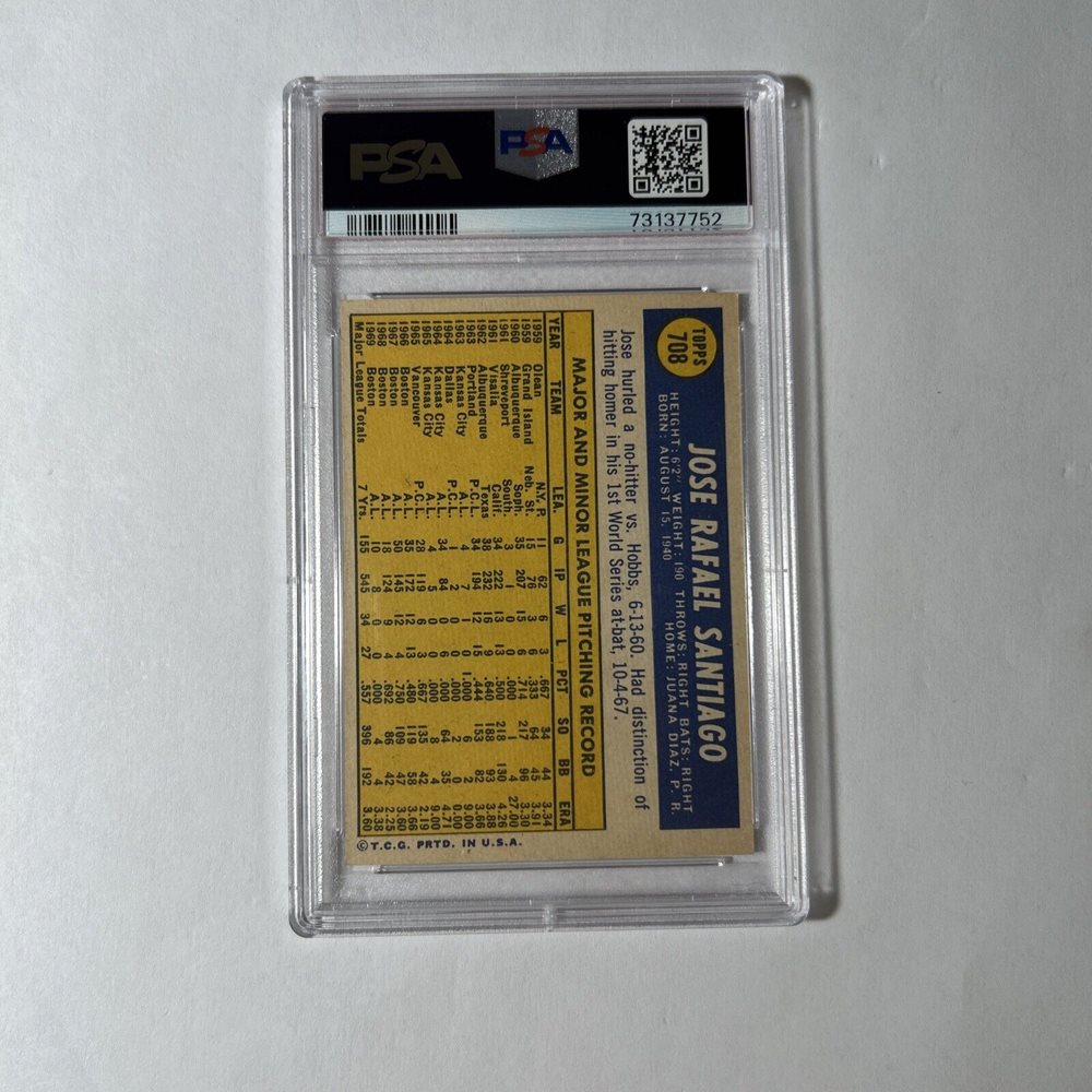 1970 Topps Baseball Jose Santiago #708 PSA 8 NM-MT New Cert Centered High Number