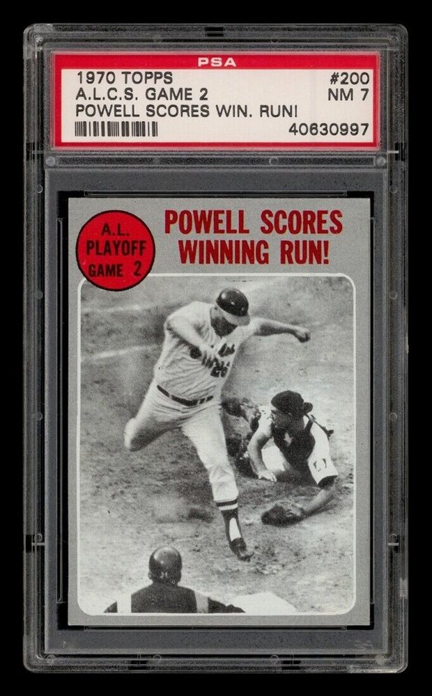 1970 Topps Set-Break #200 A.L.C.S. Game 2 Powell Scores Win. Run! PSA 7 NM