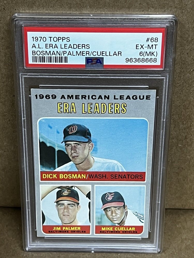 1970 Topps 1969 A.L ERA Leaders Bosman/Palmer/Cuellar #68 PSA 6 (MK) EX-MT