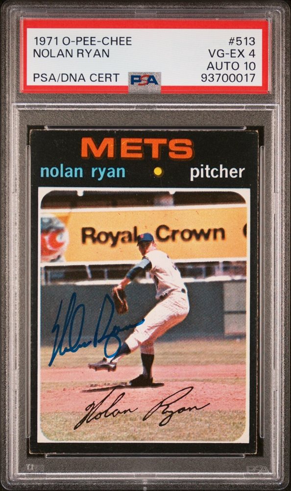 1971 O-PEE-CHEE #513 NOLAN RYAN PSA 4 AUTO 10