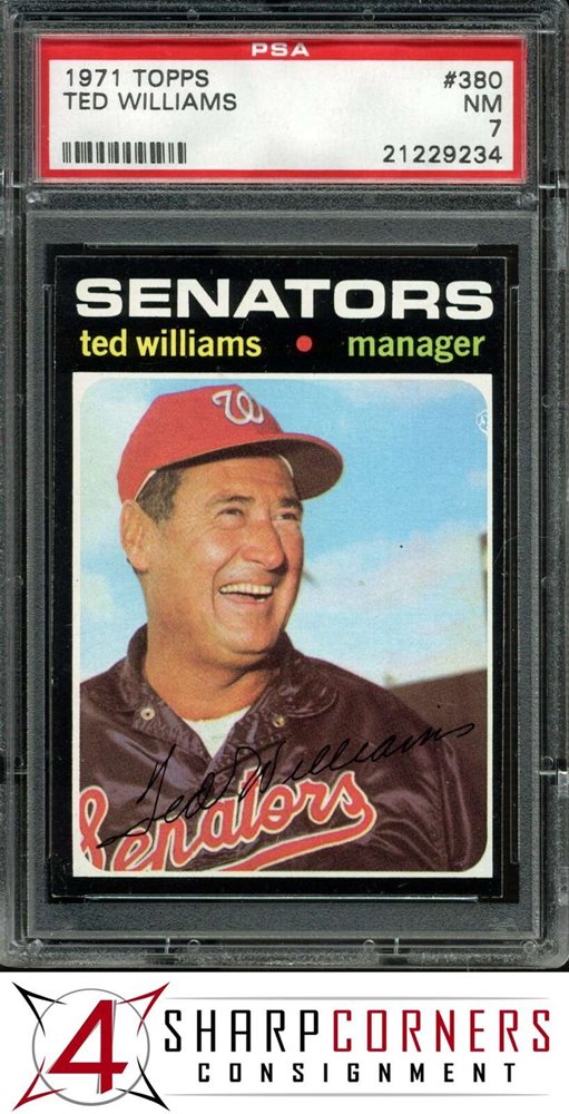 1971 TOPPS #380 TED WILLIAMS SENATORS HOF PSA 7 SET BREAK