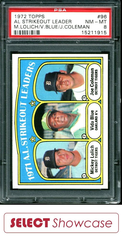 1972 TOPPS #96 MICKEY LOLICH-VIDA BLUE PSA 8 SET BREAK