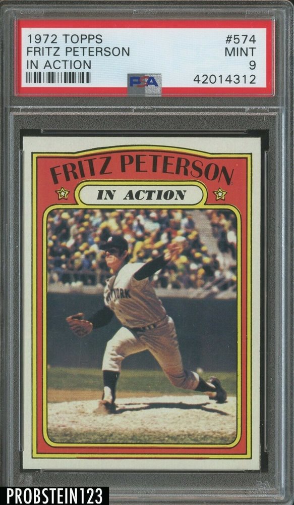 1972 Topps #574 Fritz Peterson In Action New York Yankees PSA 9 MINT