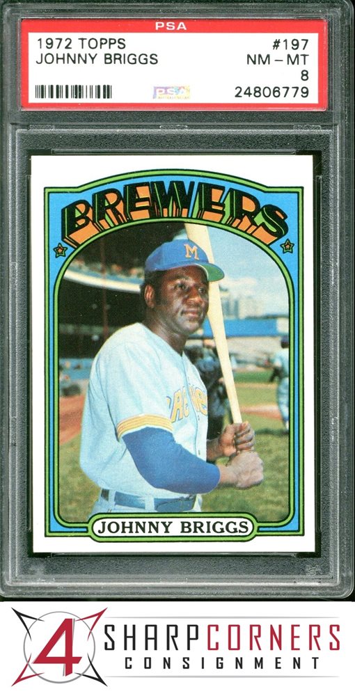 1972 TOPPS #197 JOHNNY BRIGGS BREWERS PSA 8