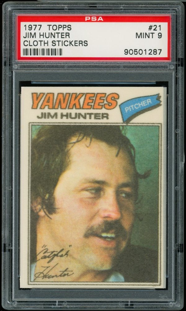 1977 Topps Cloth Stickers #21 Jim Catfish Hunter New York Yankees PSA 9 Mint HOF