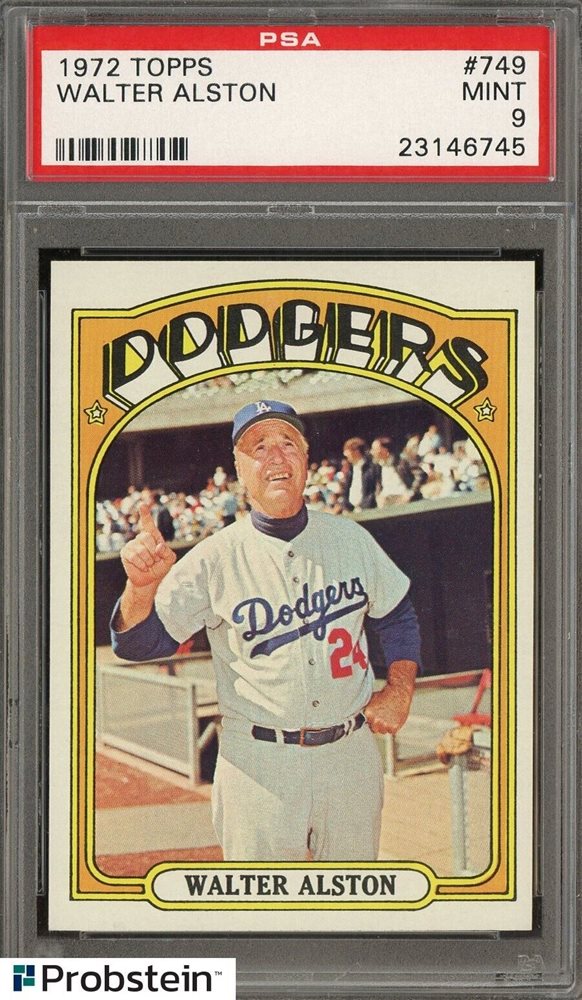 1972 Topps #749 Walt Alston Los Angeles Dodgers HOF PSA 9 MINT