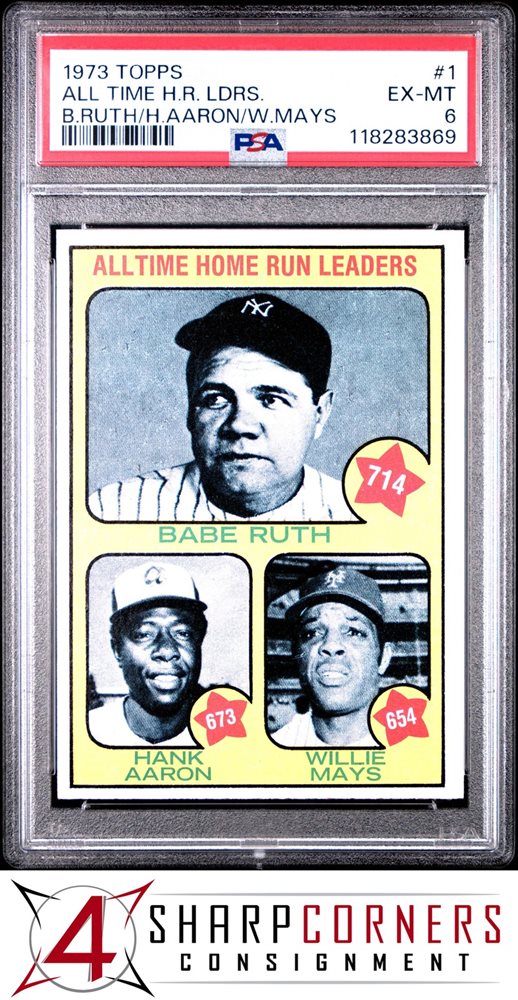1973 TOPPS #1 BABE RUTH-HANK AARON-WILLIE MAYS HOF PSA 6