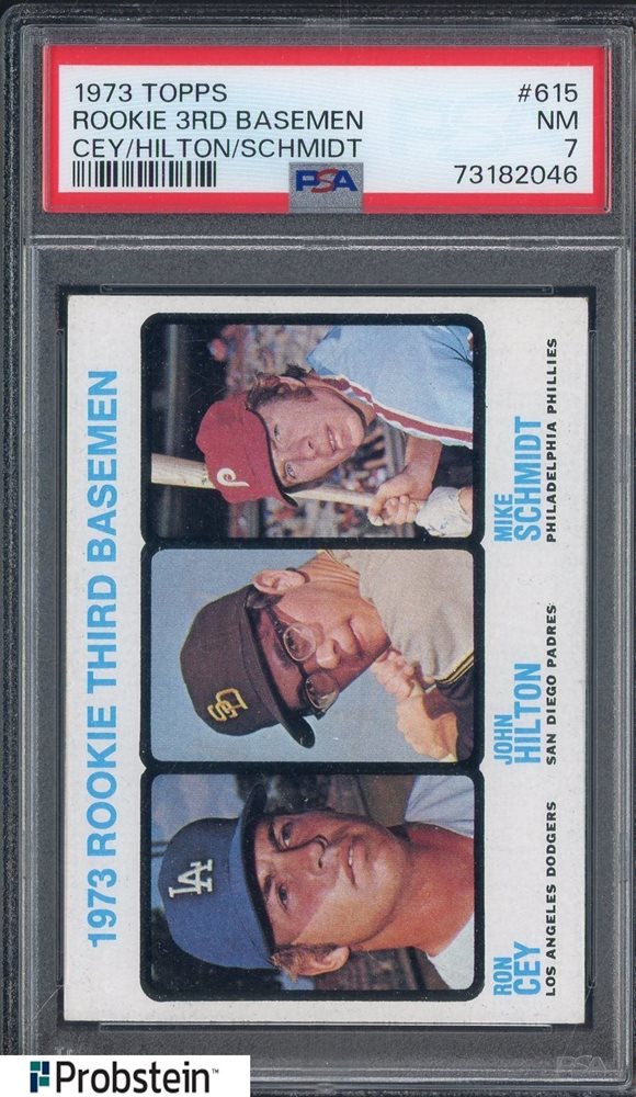 1973 Topps #615 Rookie 3rd Basemen w/ Mike Schmidt RC Rookie HOF PSA 7 NM