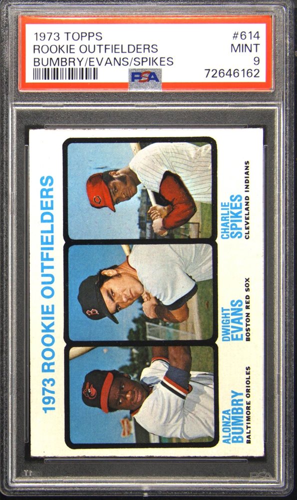 1973 Topps #614 Rookie Outfielders - Bumbry/Evans/Spikes PSA 9