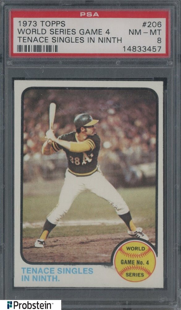 1973 Topps #206 World Series Game 4 Tenace Singles In Ninth PSA 8