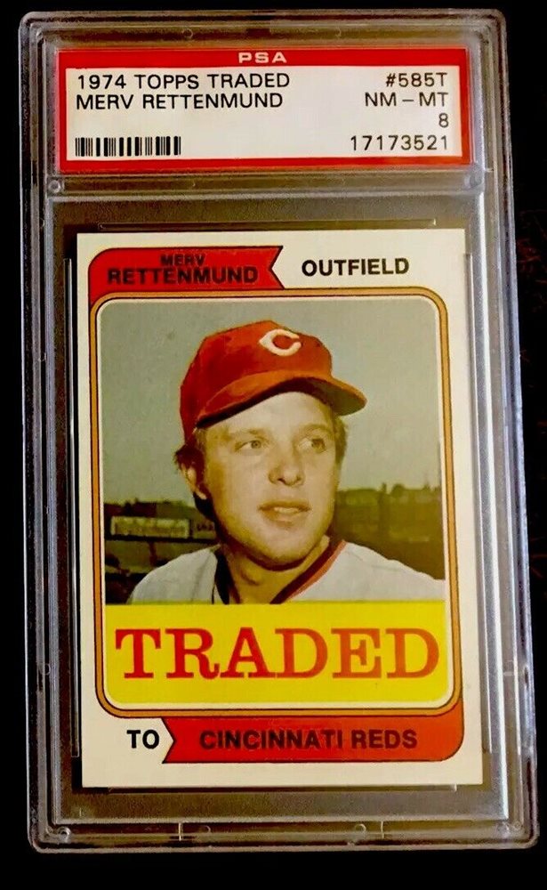 1974 TOPPS REDS PSA SET BREAK! MERV RETTENMUND TRADED PSA 8, #585T TOUGH LOW POP