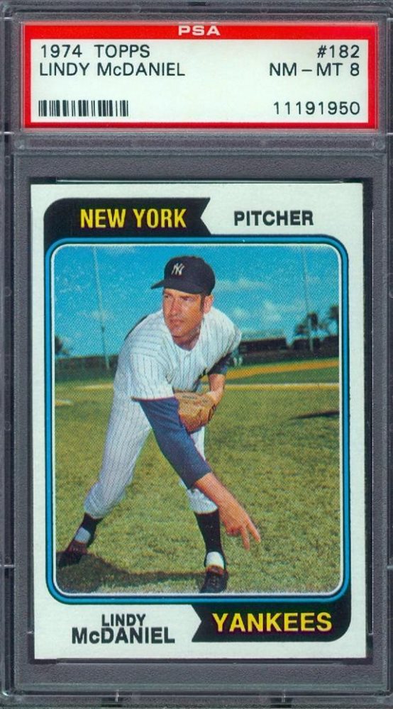 1974 TOPPS #182 LINDY McDANIEL (Yankee) PSA 8 !!