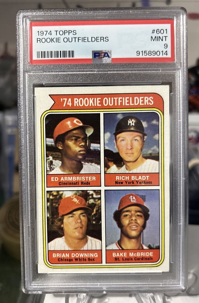 1974 TOPPS #601 OUTFIELDERS ARMBRISTER BLADT DOWNING MCBRIDE PSA 9