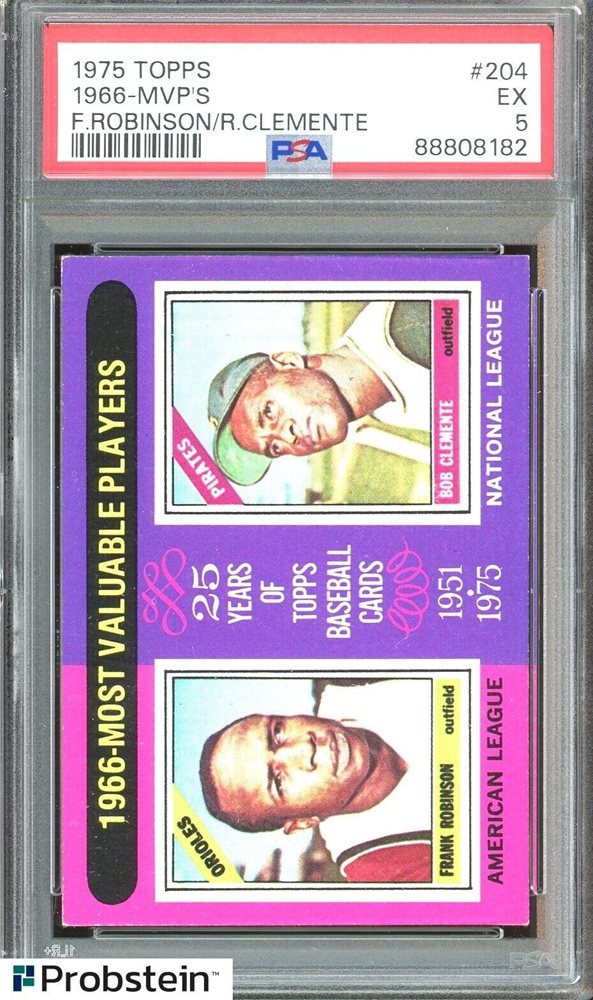 1975 Topps #204 1966 MVPs Frank Robinson Roberto Clemente HOF PSA 5 EX