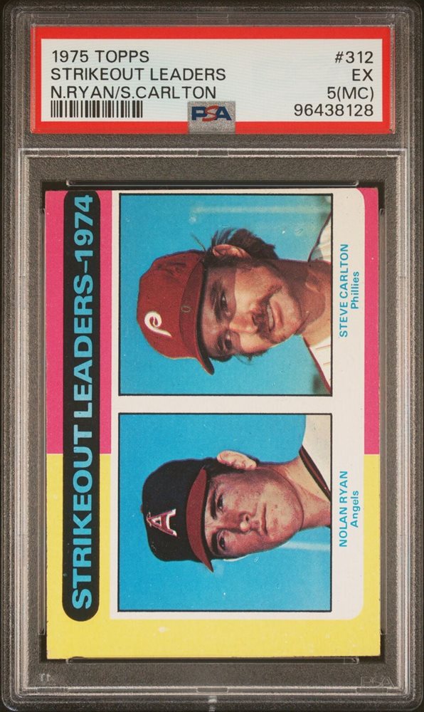 1975 TOPPS NOLAN RYAN/STEVE CARLTON #312 STRIKEOUT LEADERS PSA 5
