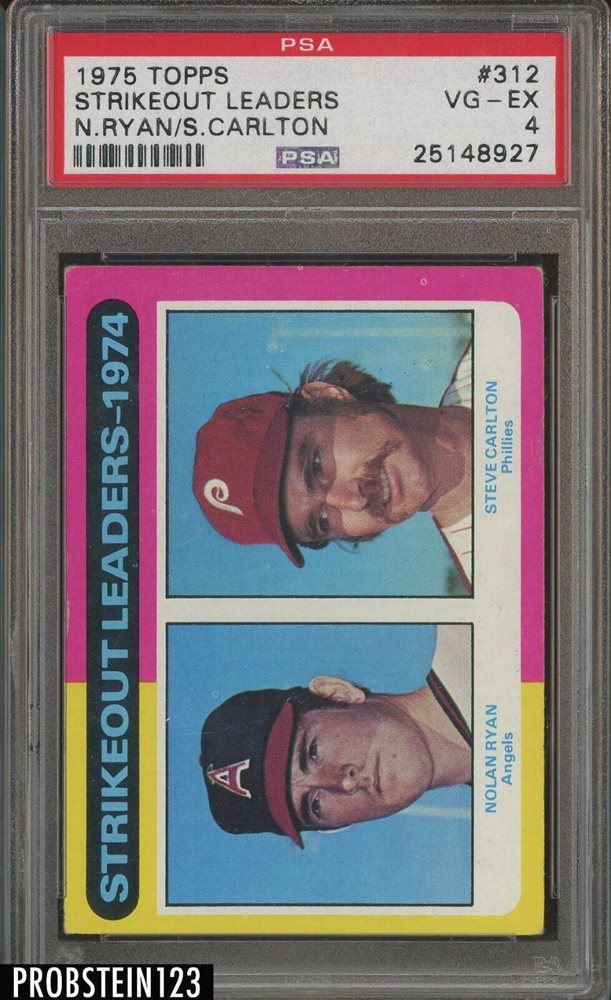 1975 Topps #312 Strikeout Leaders Nolan Ryan Steve Carlton HOF PSA 4 VG-EX