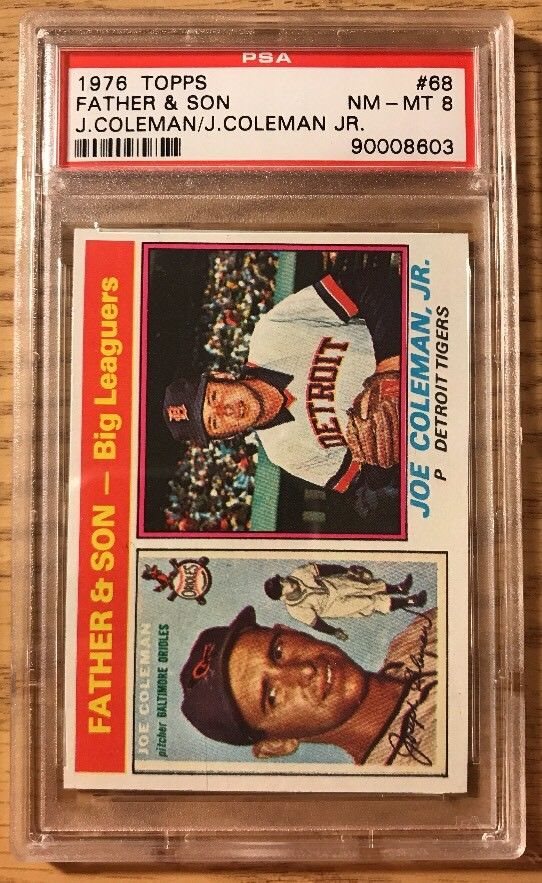 Joe Coleman/Joe Coleman Jr. Father & Son 1976 Topps #68 PSA 8 Detroit Tigers