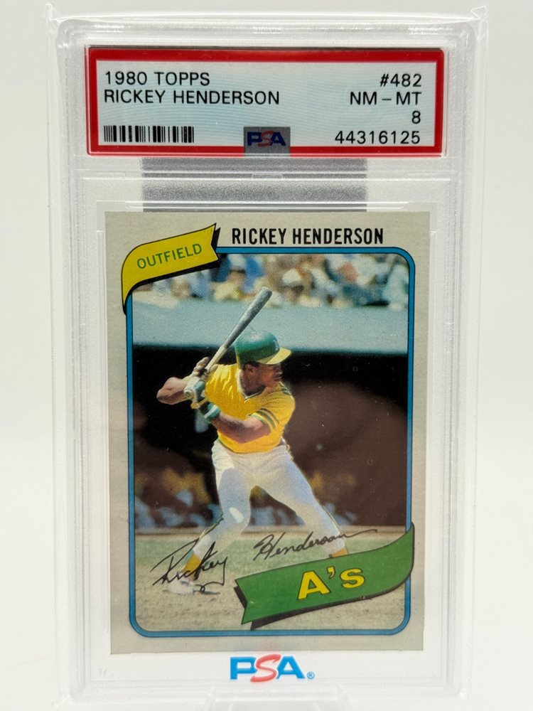 1980 TOPPS #482 RICKEY HENDERSON ROOKIE RC PSA 8 Oakland A's