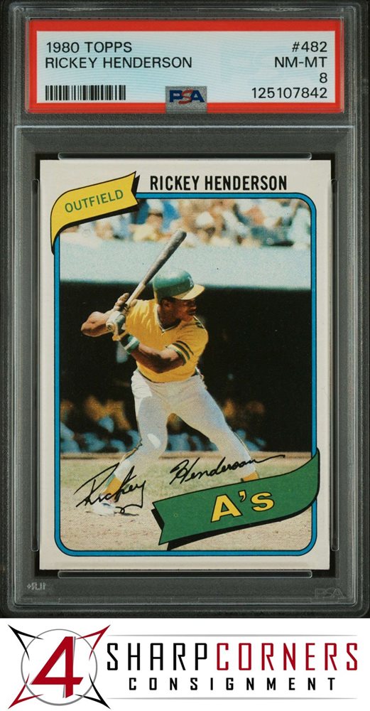 1980 TOPPS #482 RICKEY HENDERSON RC ATHLETICS HOF PSA 8