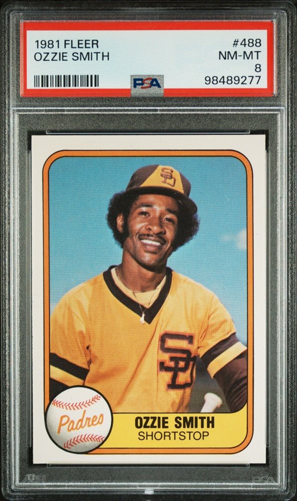1981 Fleer #488 Ozzie Smith (PSA 8- NM Mint) Hall Of Fame- San Diego Padres