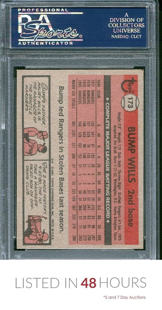 1981 TOPPS #173 BUMP WILLS RANGERS PSA 10