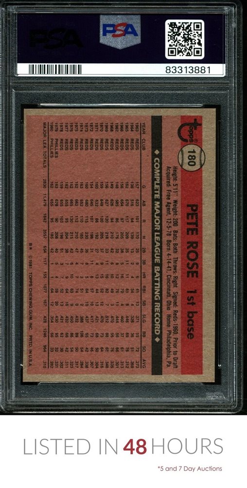 1981 TOPPS #180 PETE ROSE PHILLIES PSA 10