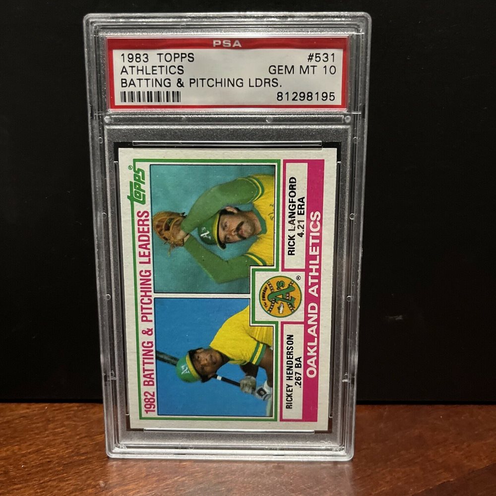 1983 topps Rickey Henderson Athletics batting and pitching leaders #531 psa 10