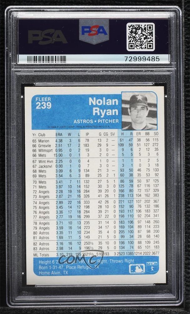 1984 Fleer Nolan Ryan #239 PSA 8 HOF