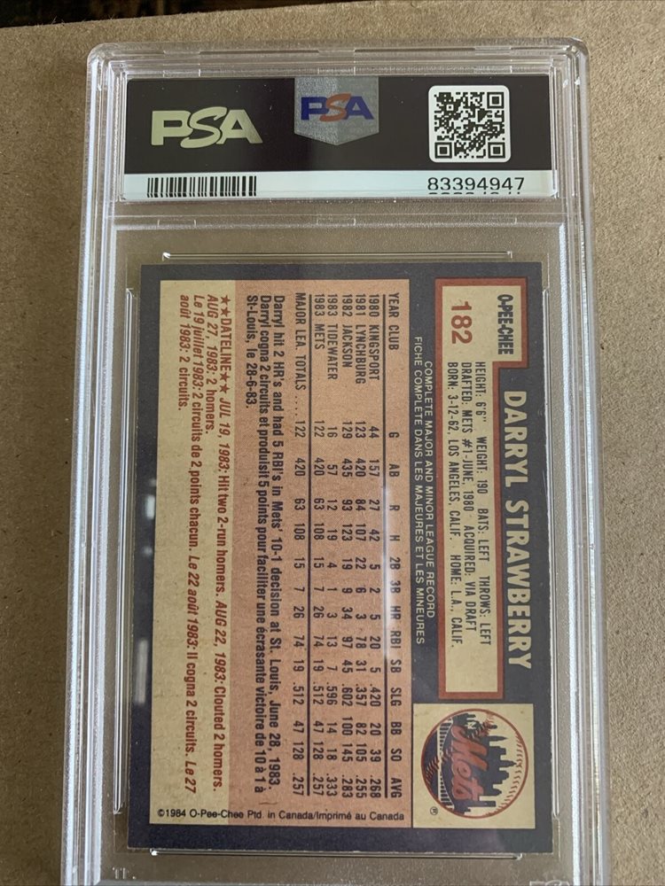 1984 O-PEE-CHEE #182 DARRYL STRAWBERRY RC METS PSA 7