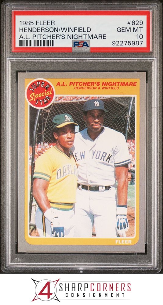1985 FLEER #629 RICKEY HENDERSON-DAVE WINFIELD HOF PSA 10 B4085407-987