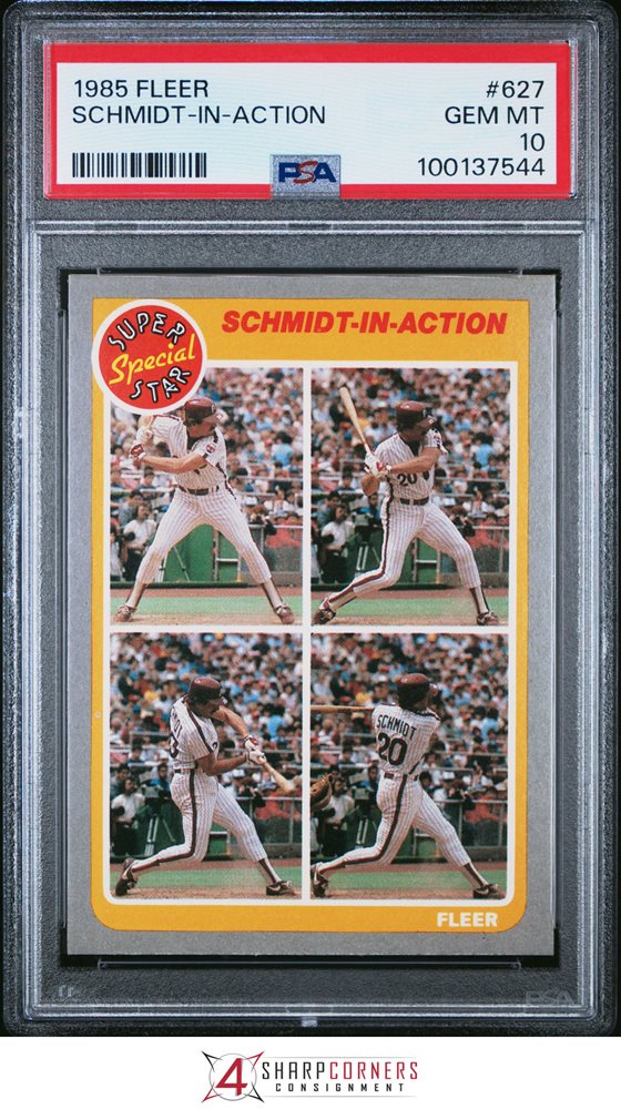 1985 FLEER #627 MIKE SCHMIDT PHILLIES HOF IN-ACTION PSA 10