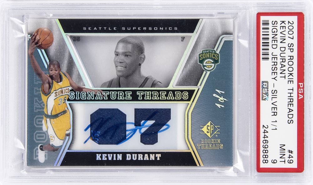 2007-08 SP Rookie Threads Silver #29 Kevin Durant Signed Patch Rookie Card (#1/1) - PSA MINT 9
