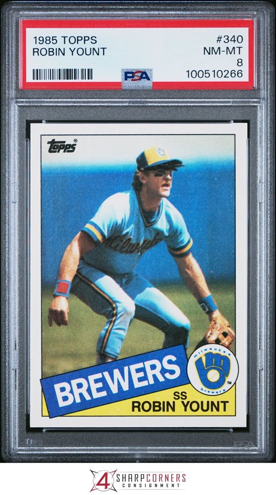 1985 TOPPS #340 ROBIN YOUNT BREWERS HOF PSA 8
