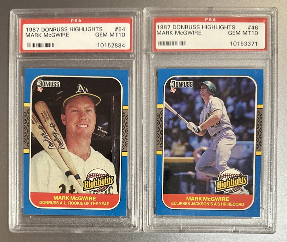 1987 Donruss Highlights (2), #46, 54, Mark McGwire ROOKIE, PSA 10 GEM MINT