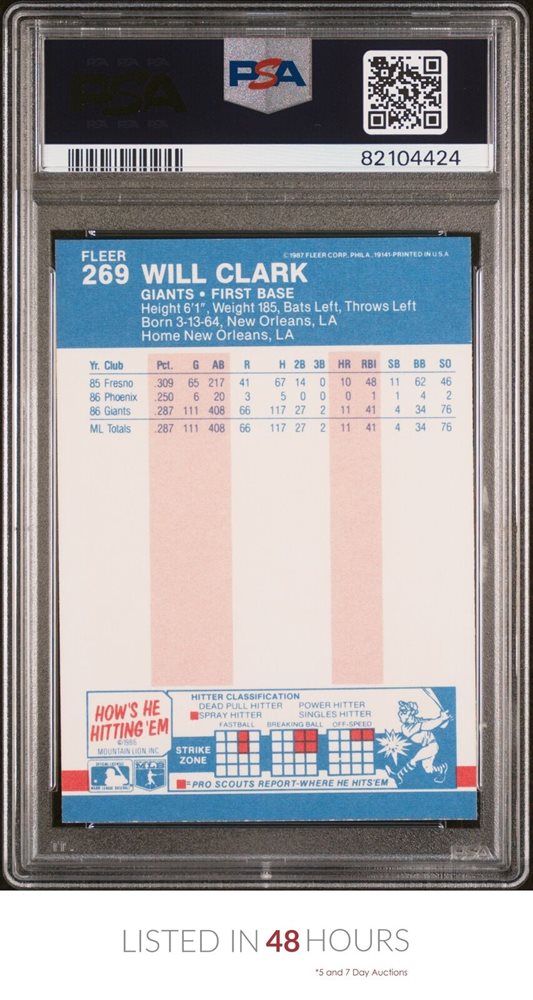 1987 FLEER #269 WILL CLARK RC GIANTS PSA 10