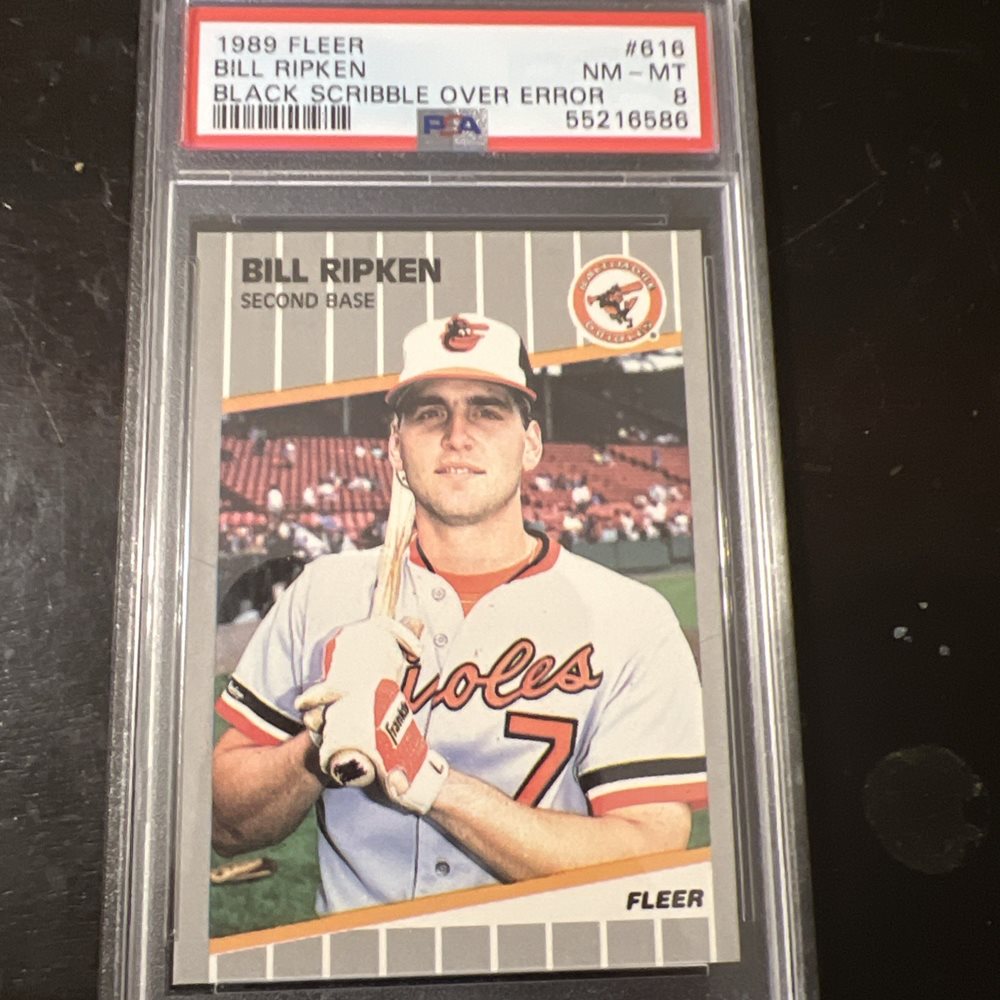 1989 Fleer - Billy Ripken #616 Black Scribble on Bat Knob PSA 8
