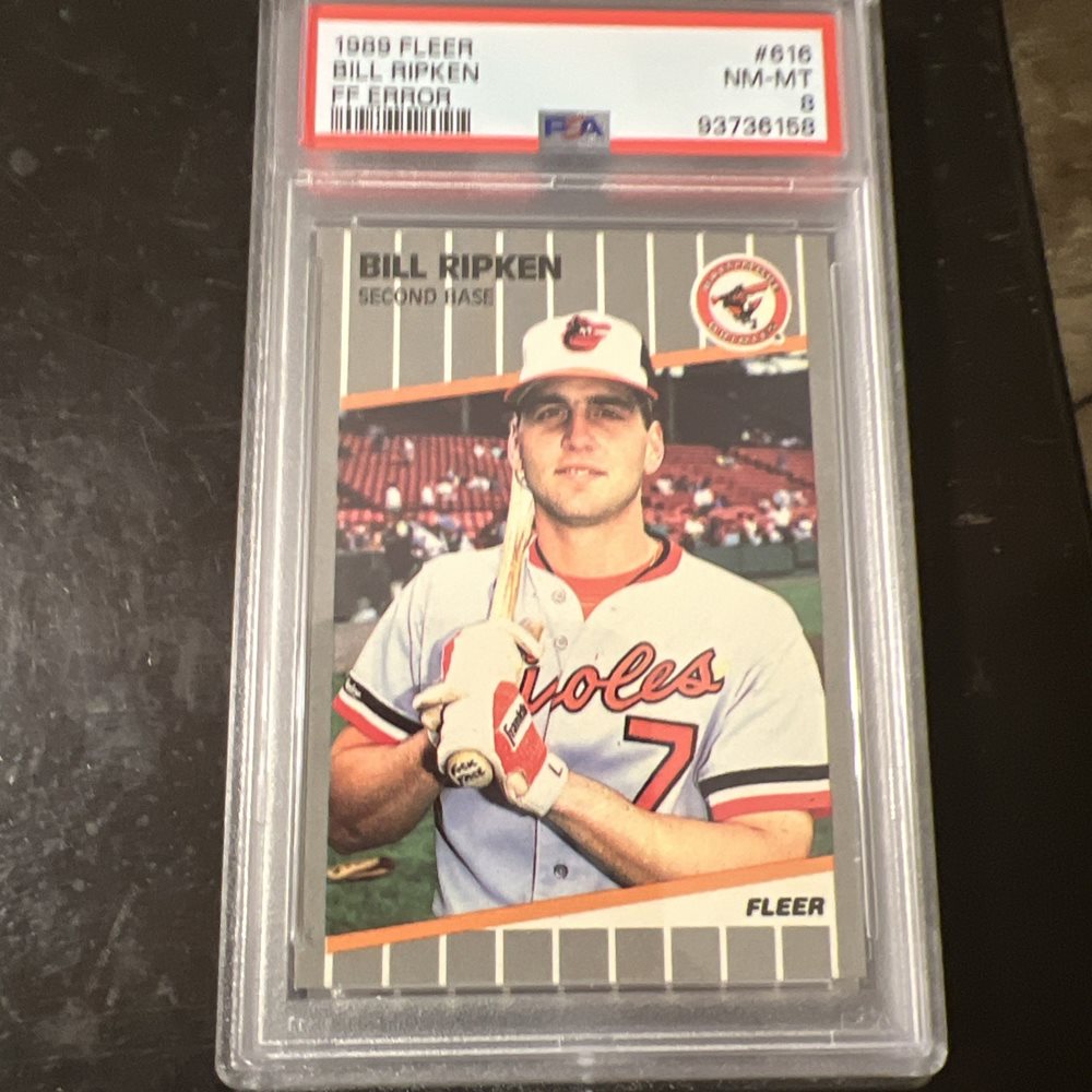 1989 Fleer - Billy Ripken #616 FF on Bat Knob PSA 8