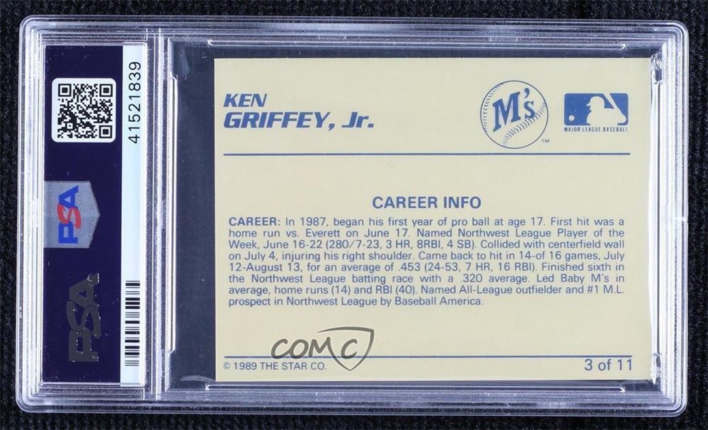 1989 STAR GRIFFEY JR. | CAREER INFO YELLOW BACK